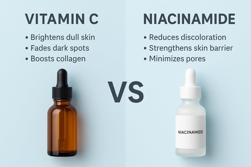Vitamin C vs niacinamide — which serum works better for dark spots and uneven skin tone? Compare benefits, skin types, and top affordable Amazon picks in this 2025 guide.