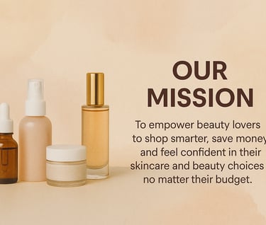 Our mission is to empower beauty lovers to shop smarter, save money, and feel confident in their skincare and beauty choices, no matter their budget.